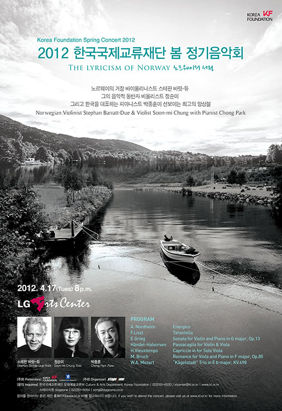 한국국제교류재단은 매년 봄, 세계무대에서 주목 받거나 새로운 장르의 음악을 선보이는 해외 연주자를 초청해 해당 국가 대사관과 협력하여 정기공연을 개최해왔다. 올 봄에는 노르웨이 최고의 음악교육기관 바랏-듀 음악원(the Barratt Due Institute of Music)의 예술감독이자 지휘자, 바이올리니스트로 명망을 쌓아 온 스테판 바랏-듀가 음악적 동반자이자 인생의 동반자인 비올리스트 정순미와 함께 노르웨이의 선율을 선사한다.