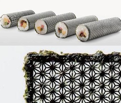 최근 일본의 한 디자인 회사에서는 ‘꽃무늬 김밥’을 선보였다. ‘꽃무늬 김밥은’ 김에 레이저로 꽃무늬 패턴을 새겨 넣었다.