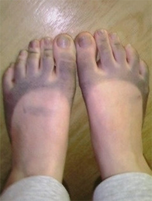 공개된 ‘싼 구두 신었더니’사진에는 싼 구두를 신었다가 구두의 염색이 빠지면서 발이 검게 물이든 모습이 담겨있다.