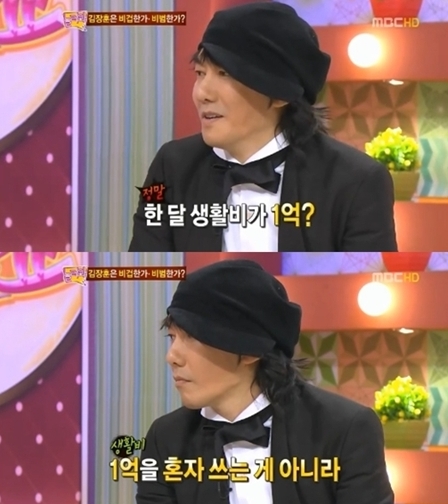 김장훈은 지난 14일 방송된 MBC ‘유재석 김원희의 놀러와’에 출연해 한 달 생활비가 1억원이라고 깜짝 고백했다.