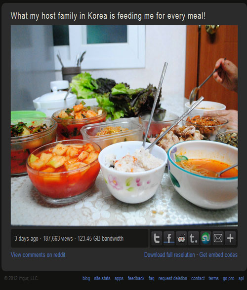 화제가된 사진은 흔히 볼 수 있는 평범한 한국 집밥 사진이다. 밥과 국, 김치, 깍두기, 쌈 등으로 차려진 밥상에 해외 네티즌들이 뜨거운 관심을 나타낸 것.