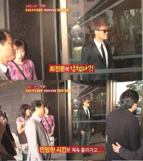 박진영은 결혼식이 끝난 후 나오다가 회전문 안에 갇혀버린 것. 수많은 취재진들이 그를 향해 카메라 플래시를 터뜨렸고 박진영은 회전문 때문에 굴욕을 당해야만 했다.