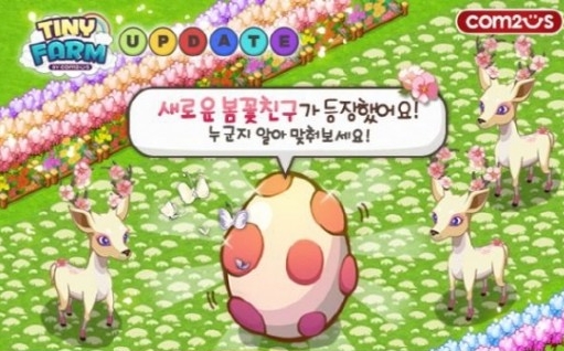 컴투스의 스마트폰용 인기 소셜네트워크게임 타이니팜에 새로운 봄꽃동물이 등장해 눈길을 끌고 있다.