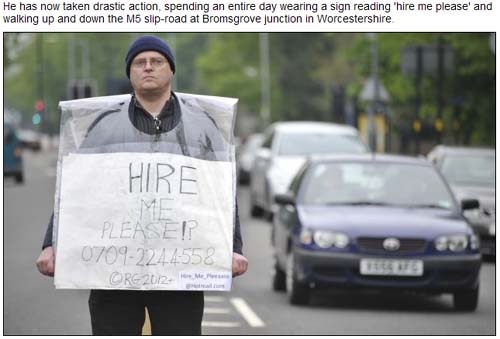 23일(현지시각) 영국 미러지에서는 로빈 노튼(40)이라는 이름의 남성이 10년 동안 직장을 구하지 못하다 결국 거리로 나와 스스로를 광고하게 된 사연을 보도했다.