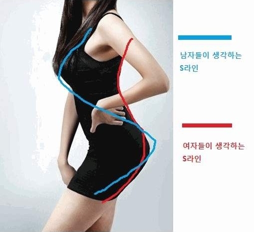 공개된 사진은 한 여성의 S라인 몸매를 두고 남자와 여자의 다른 생각 차이를 표시한 것으로, 남자는 가슴부터 엉덩이까지의 라인을 ‘S라인’이라고 생각하는 반면, 여자는 등부터 엉덩이까지의 라인을 ‘S라인’이라고 생각한다고 나타나 있다.