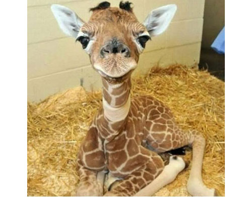 공개된 사진에는 막 태어난 새끼기린이 지푸라기 위에 쭈그리고 앉아 있는 모습이다. 이 막 태어난 새끼기린의 귀여운 모습에 수 많은 네티즌이 반해버렸다.