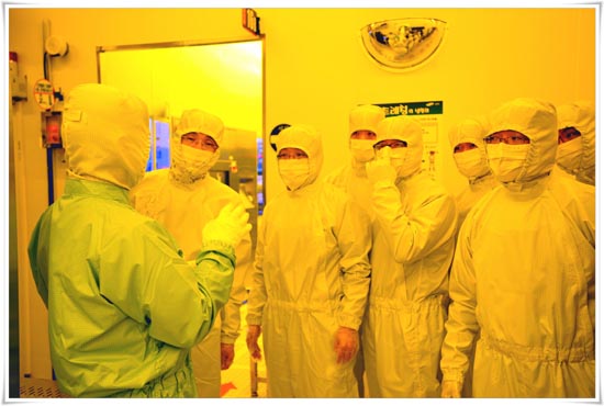 반도체 공장하면 떠오르는 것이 바로 우주복과 흡사한 작업복이다. 미세한 먼지도 생산 공정에 큰 차질을 줄 수 있기 때문에 먼지와 기타 오염물질로부터 반도체를 보호하기 위해 반드시 착용해야만 한다.