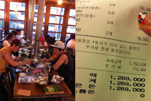 공개된 ‘풀하우스 회식비’ 사진에는 ‘풀하우스’ 식구들이 회식 자리에서 고기를 먹고 있는 모습이 담겨 있다. 또 그 옆에는 1,269,000원이라는 금액이 표기된 영수증이 공개됐다.