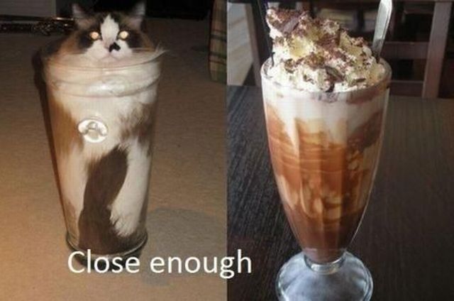 공개된 ‘아이스초코 고양이’사진 속에는 실제 아이스초코 음료수가 담겨있는 컵 사진과 함께 컵 속에 들어가 있는 고양이의 모습이 보인다. 특히 컵 속에 몸을 넣고 있는 고양이의 털색이 비교돼 있는 아이스 초코과 매우 흡사해 네티즌들의 시선을 사로잡았다.