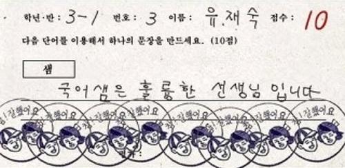 공개된 ‘사회성 뛰어난 아이’ 속에는 한 초등학생이 시험지에 적은 답이 담겨 있다. 특히 ‘샘’이라는 단어로 하나의 문장을 만들어야 하는 문제에 이 초등생은 “국어샘은 훌륭한 선생님입니다”라고 적어 웃음을 자아냈다.