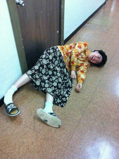 공개된 사진에서 박지선은 KBS2 ‘개그콘서트’ ‘불편한 진실’의 분장을 한 채 바닥에 우스꽝스럽게 쓰러져 있다.