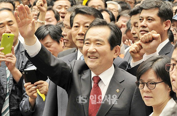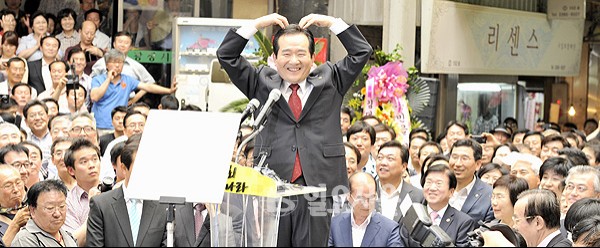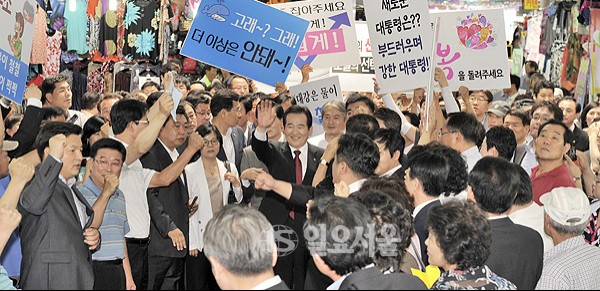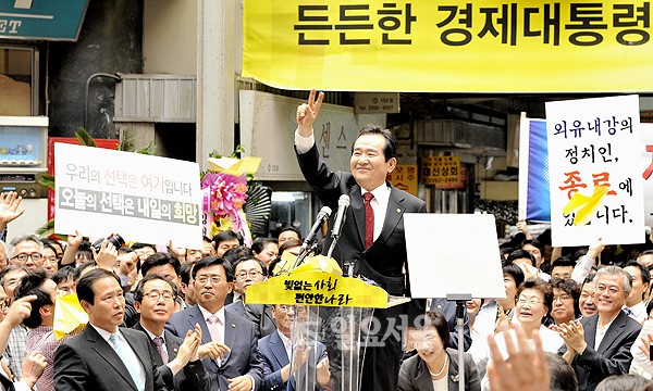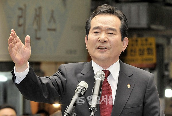 정세균 민주통합당 상임고문이 26일 종로구 광장시장에서 기자회견을 열고 대선 출마 선언을 하고 있다.