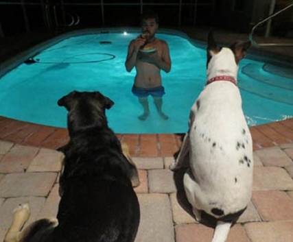 특히 개들은 수영장에 들어가지 못하고 밖에서 전전긍긍하며 피자를 먹는 주인을 쳐다보고 있어 웃음을 자아냈다.