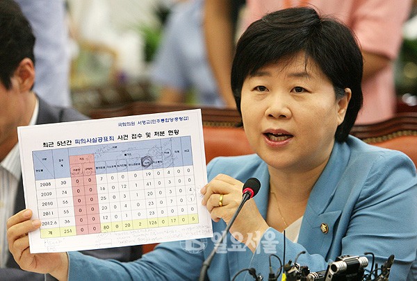 ▲ ⓒ 일요서울 정대웅 기자 민주통합당 서영교 의원이 24일 국회에서 열린 원내대책회의에서 검찰의 박지원 원내대표에 대한 피의사실 공표 문제를 지적하며 최근 5년간 피의사실 공표 현황을 공개하고 있다. 정대웅 기자 asraiphoto@naver.com 정대웅 기자 photo@ilyoseoul.co.kr 저작권자 © 일요서울i 무단전재 및 재배포 금지 정대웅 기자 다른기사 보기