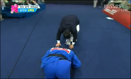 [일요서울l강휘호 기자] 유도선수 송대남(33·남양주시청)이 금메달을 딴 후 보여준 정훈 감독과의 맞절 세레모니에 네티즌들의 이목이 집중됐다.