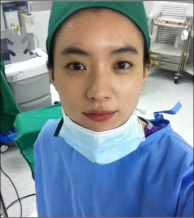 공개된 사진 속 한효주는 수술복 차림을 한 채 카메라를 응시하고 있다.