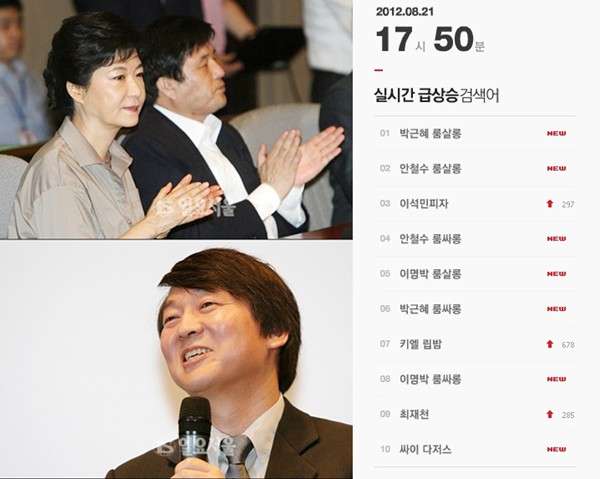 ‘박근혜 룸살롱’ ‘안철수 룸살롱’…네이버 인기검색어 도배 ‘논란’