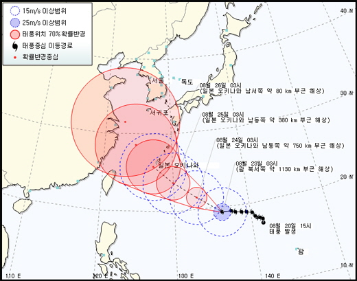 기상청은 태풍 ‘볼라벤’ 영향으로 27일 오전 제주도를 시작으로 27∼28일 우리나라 대부분 지역이 직접적인 영향권에 들 것으로 전망했다.