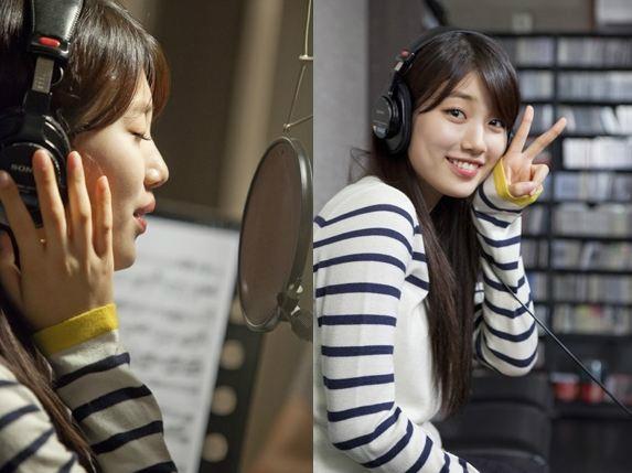 수지는 최근 배우 김수현과 아웃도어 브랜드 광고 촬영을 마친 후 광고 배경음악으로 쓰일 글램핑송을 녹음하는 모습을 통해 무결점 민낯을 과시했다.