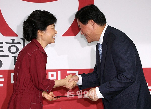 ▲ ⓒ 일요서울 정대웅 기자 새누리당 박근혜 대통령 후보가 5일 여의도 새누리당사에서 열린 대통령선거대책기구 임명장 수여식에서 이주영 대선기획단장, 김종인 국민행복추진위원장, 안대희 정치쇄신특위 위원장, 최경환 비서실장 등에게 임명장을 수여하고 있다. 정대웅 기자 asraiphoto@naver.com 정대웅 기자 photo@ilyoseoul.co.kr 저작권자 © 일요서울i 무단전재 및 재배포 금지 정대웅 기자 다른기사 보기
