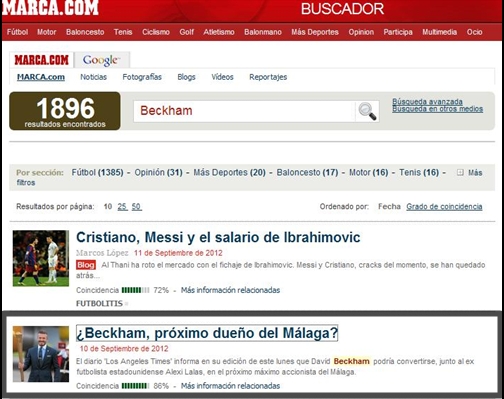 ▲ 현지 언론에 보도된 베컴 말라가 인수설 <사진=스페인 마르카 홈페이지>