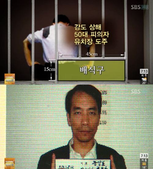 최씨가 탈옥한 유치장 배식구는 가로 45cm 세로 15cm의 협소한 크기다. 경찰은 CCTV에 잡힌 최씨의 몸에 빛이 밝게 반사된 점을 미뤄 샴푸 등 세면용 세제를 발라 배식구를 통과했을 것으로 추측하고 있다.