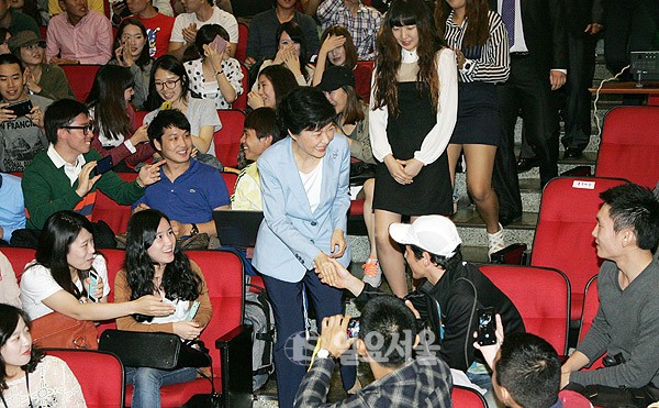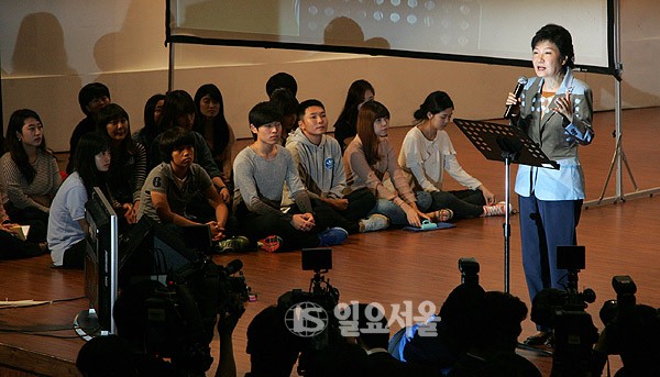 새누리당 박근혜 대선 후보가 18일 성남 가천대학교에서 열린 특별강연회에서 학생들의 환호를 받으며 입장하고 있다. 정대웅 기자 asraiphoto@naver.com 정대웅 기자 photo@ilyoseoul.co.kr 저작권자 © 일요서울i 무단전재 및 재배포 금지 정대웅 기자 다른기사 보기