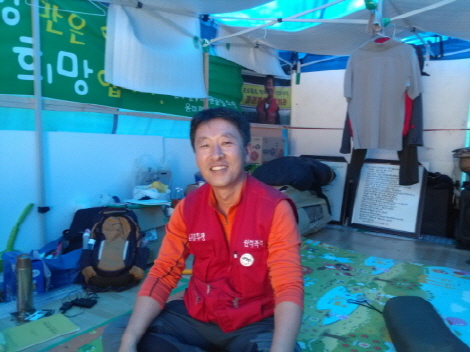 [일요서울|강길홍 기자] 추석처럼 특별한 날이 반갑지 않은 사람들이 있다. 8년이라는 긴 시간 동안 코오롱그룹(회장 이웅렬)의 정리해고에 맞서 투쟁을 벌이고 있는 최일배 코오롱 정리해고분쇄투쟁위원회(이하 정투위) 위원장도 그중 한 사람이다. 최 위원장은 코오롱 구미공장에서 13년간 일하다 2005년 정리해고를 당했다. 이번 추석에도 가족들이 있는 집 대신 경기 과천시의 코오롱 사옥 앞에 설치한 천막에서 보내게 됐다. 지난달 25일 최일배 위원장을 만났다.