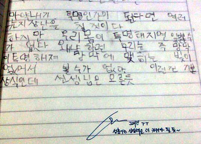 이어 “이런 건 기본 상식인데 선생님은 모른 듯”이라고 써 이에 선생님은 “그래? ㅜㅜ 상상력을 더 키워야 할 듯~”이라 적어놔 눈길을 끈다.