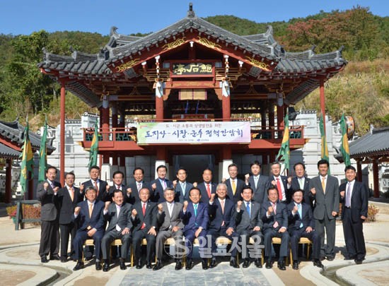 경상북도는 15일 김관용 도지사와 23개 시·군의 시·군수는 ‘도지사-시장·군수 정책 간담회’를 갖고 최근 태풍 피해복구와 휴브글로벌 불산 누출사고 등 지역의 어려움을 슬기롭게 극복하고 다시 한번 경북이 재도약할 수 있도록 도와 시군이 힘을 모으자고 결의를 다졌다.