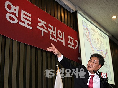 17일 국회에서 열린 새누리당 의원총회에서 정문헌 의원이 'NLL 포기' 발언과 관련해 설명하고 있다.