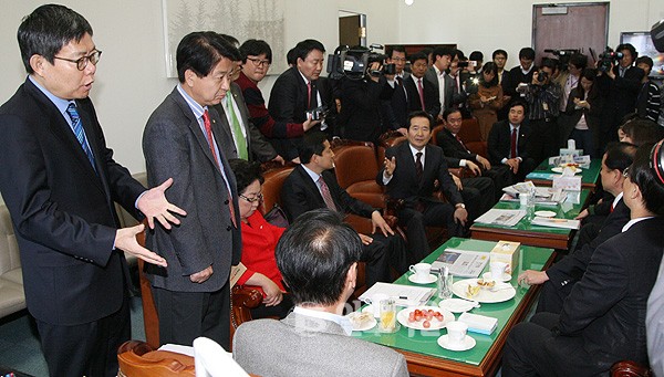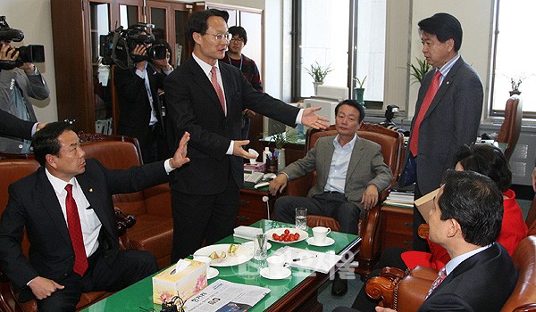 18일 열릴 예정이던 국회 문방위 국정감사가 정수장학회 증인채택 문제로 파행을 거듭하고 있는 가운데 회의속개를 요구하는 야당 의원들과 사과를 요구하는 새누리당 의원들이 한선교 위원장실에서 언쟁을 벌이고 있다. 정대웅 기자 asraiphoto@naver.com 정대웅 기자 photo@ilyoseoul.co.kr 저작권자 © 일요서울i 무단전재 및 재배포 금지 정대웅 기자 다른기사 보기