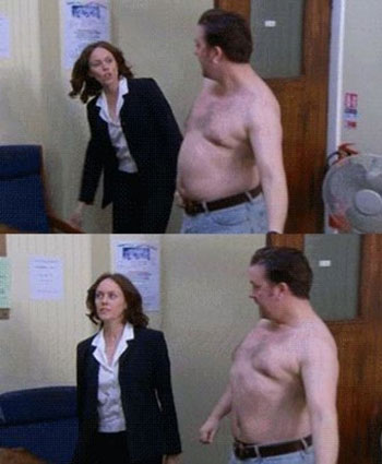 공개된 영상에 따르면, 한 남성은 자신이 매력적이라고 생각하는 여성이 지나치자, 툭 튀어나온 배를 힘껏 집어넣는다.