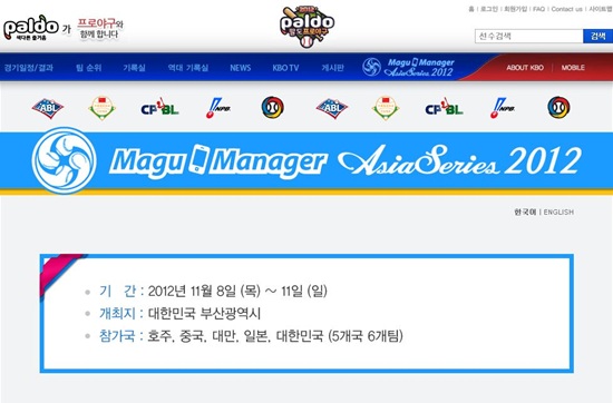 [일요서울|강휘호 기자] 한국야구위원회(KBO)는 24일 “11월8일부터 11일까지 부산 사직구장에서 열리는 ‘2012 마구매니저 아시아시리즈’의 공식 홈페이지(www.asiaseries2012.com)와 페이스북(www.facebook.com/asiaseries2012)을 오픈했다”고 밝혔다.