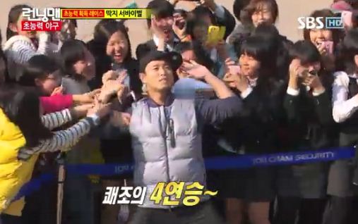 개리는 추신수에 이어 지석진, 하하, 송지효까지 연거푸 이기며 4연승을 이뤄낸 것. 특히 개리는 원조 딱지왕이라 불렸던 유재석과의 대결에서도 승리해 우레와 같은 호응을 얻었다.
