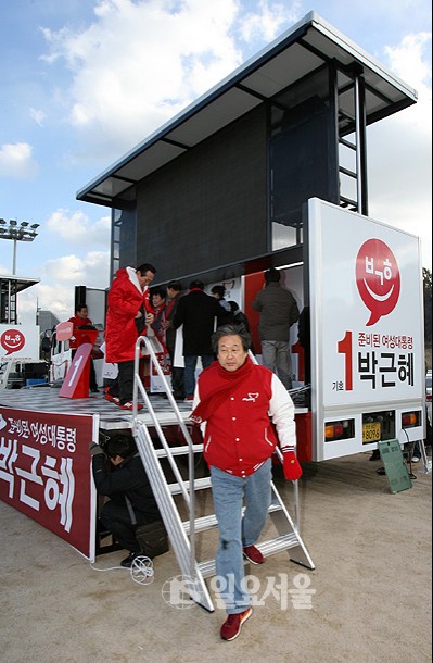 ▲ ⓒ 일요서울 정대웅 기자 김무성 총괄본부장을 비롯한 새누리당 관계자들이 18대 대선 공식 선거운동을 하루 앞둔 26일 오후 여의도 국회 둔치주차장에서 박근혜 대선후보의 선거 유세차량을 공개하고 있다. 정대웅 기자 asraiphoto@naver.com 정대웅 기자 photo@ilyoseoul.co.kr 저작권자 © 일요서울i 무단전재 및 재배포 금지 정대웅 기자 다른기사 보기