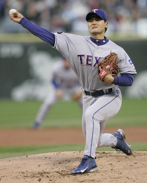 ▲ 박찬호가 지난 2005년 텍사스 소속으로 활약할 당시 시카고에서 열린 미프로야구 시카고 화이트삭스와의 경기에서 투구를 하고 있다<사진=뉴시스>