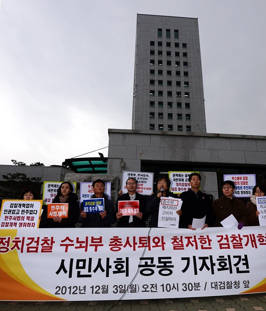 참여연대, 새사회연대, 공무원노조 등 92개 시민단체는 3일 “정치검찰 청산 없이는 검찰 개혁도 없다”며 권재진 법무부장관, 최재경 대검 중수부장의 해임과 최교일 서울중앙지검장, 노환균 법무연수원장 등의 퇴진을 촉구했다.