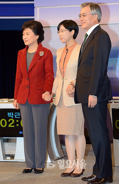 10일 오후 박근혜 새누리당 대선 후보와 이정희 통합진보당 대선후보, 문재인 민주통합당 대선 후보가 여의도 KBS스튜디오에서 진행된 2차 TV토론에 참석해 기념촬영을 하고 있다. 사진공동취재단 정대웅 기자 photo@ilyoseoul.co.kr 저작권자 © 일요서울i 무단전재 및 재배포 금지 정대웅 기자 다른기사 보기