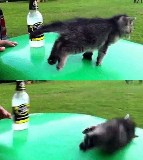 공개된 ‘한잔했냥’ 영상 속에는 회색 털을 가진 아기 고양이의 모습이 담겨있다. ‘한잔했냥’고양이는 음료수병이 놓여있는 녹색 자동차 위에서 술에 취한 것처럼 비틀대다 넘어진다.