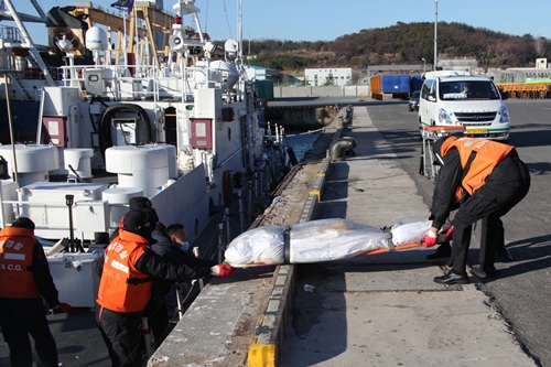 이날 인근을 항해 중이던 예인선 J호가 변사체를 발견하고 해경에 신고했다. 이후 주변해상에서 실종자 수색을 하고 있던 울산해경 소속 경비정에서 변사체를 인양해 병원으로 이송했다.