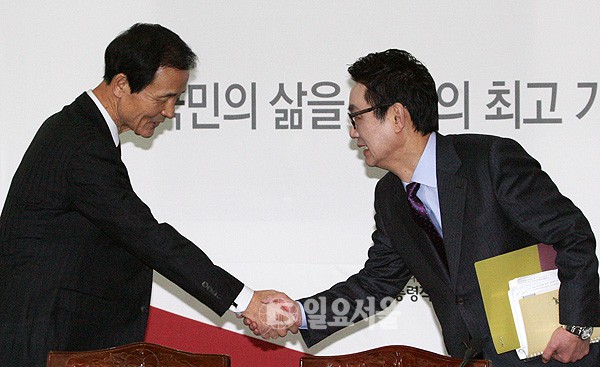 ▲ ⓒ 일요서울 정대웅 기자 28일 오전 삼청동 대통령직인수위원회에서 열린 간사단회의에서 김장수 외교국방통일분과 간사와 윤창중 대변인이 인사를 나누고 있다. 정대웅 기자 photo@ilyoseol.co.kr 정대웅 기자 photo@ilyoseoul.co.kr 저작권자 © 일요서울i 무단전재 및 재배포 금지 정대웅 기자 다른기사 보기