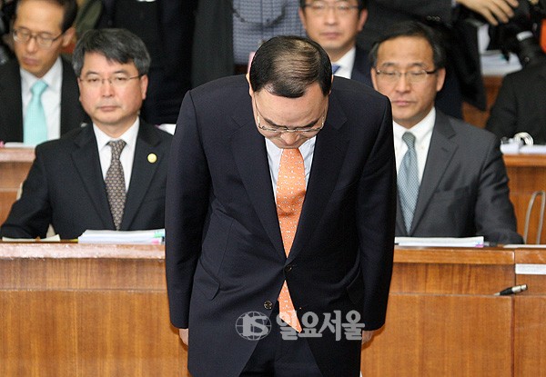 20일 오전 국회에서 열린 국무총리 후보자 인사청문회에서 정홍원 후보자가 모두발언에 앞서 인사를 하고 있다.