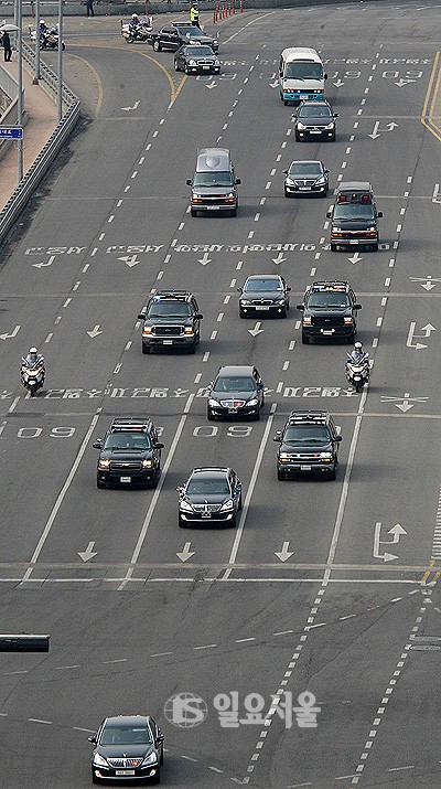 취임식장 들어서는 박근혜 대통령 경호차량