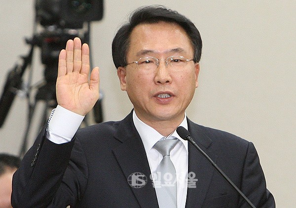 방하남 고용노동부장관 후보자가 4일 오전 국회 환경노동위원회에서 열린 인사청문회에서 선서를 하고 있다.