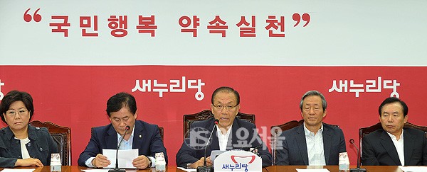 10일 오전 여의도 새누리당 당사에서 열린 최고중진연석회의에서 황우여 대표가 모두발언을 하고 있다.