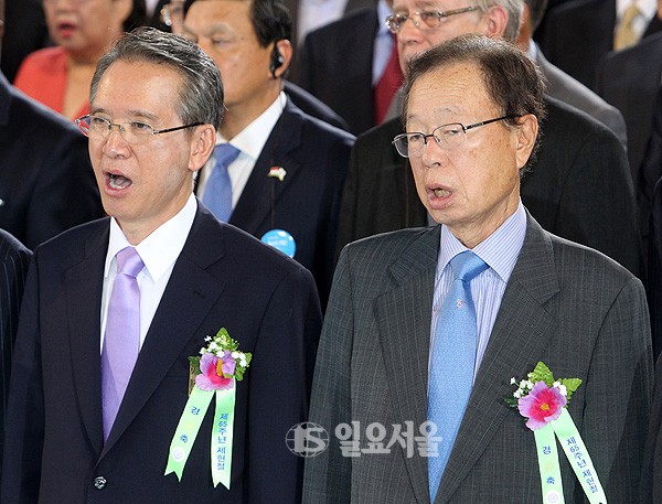 애국가 부르는 박희태-김형오