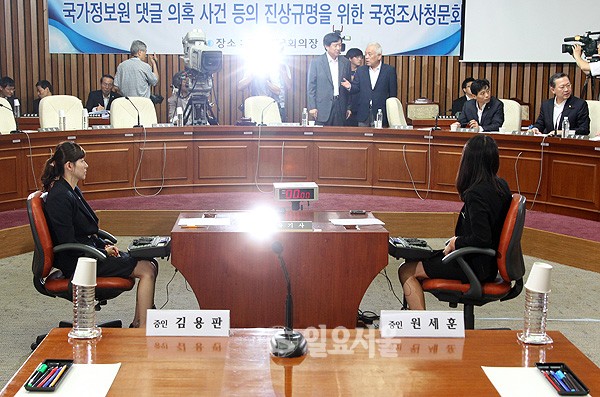▲ ⓒ 일요서울 정대웅 기자 14일 오전 국회에서 열린 국정원 국정조사청문회에서 원세훈, 김용판 증인이 불출석한 가운데 민주당 김한길 대표가 청문회장을 찾아 신기남 위원장과 대화를 나누고 있다. 정대웅 기자 photo@ilyoseoul.co.kr 정대웅 기자 photo@ilyoseoul.co.kr 저작권자 © 일요서울i 무단전재 및 재배포 금지 정대웅 기자 다른기사 보기