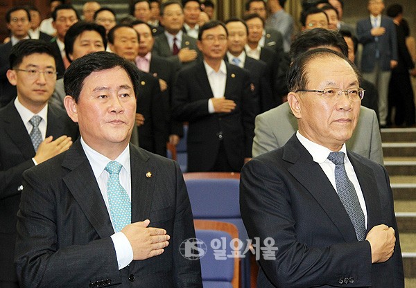 ▲ ⓒ 일요서울 정대웅 기자 황우여 새누리당 대표와 최경환 원내대표가 3일 오후 국회에서 이석기 통합진보당 의원의 체포동의안 처리 문제를 두고 열린 의원총회에서 국민의례를 하고 있다. 정대웅 기자 photo@ilyoseoul.co.kr 정대웅 기자 photo@ilyoseoul.co.kr 저작권자 © 일요서울i 무단전재 및 재배포 금지 정대웅 기자 다른기사 보기