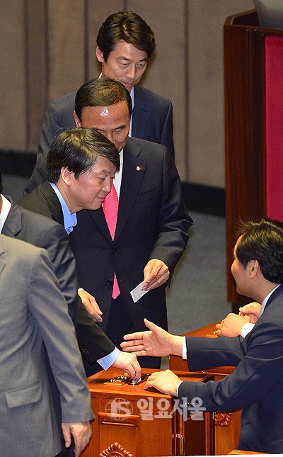 4일 오후 열린 국회 본회의에서 이석기 통합진보당 의원의 체포동의안에 대해 안철수 의원이 투표를 하고 있다.